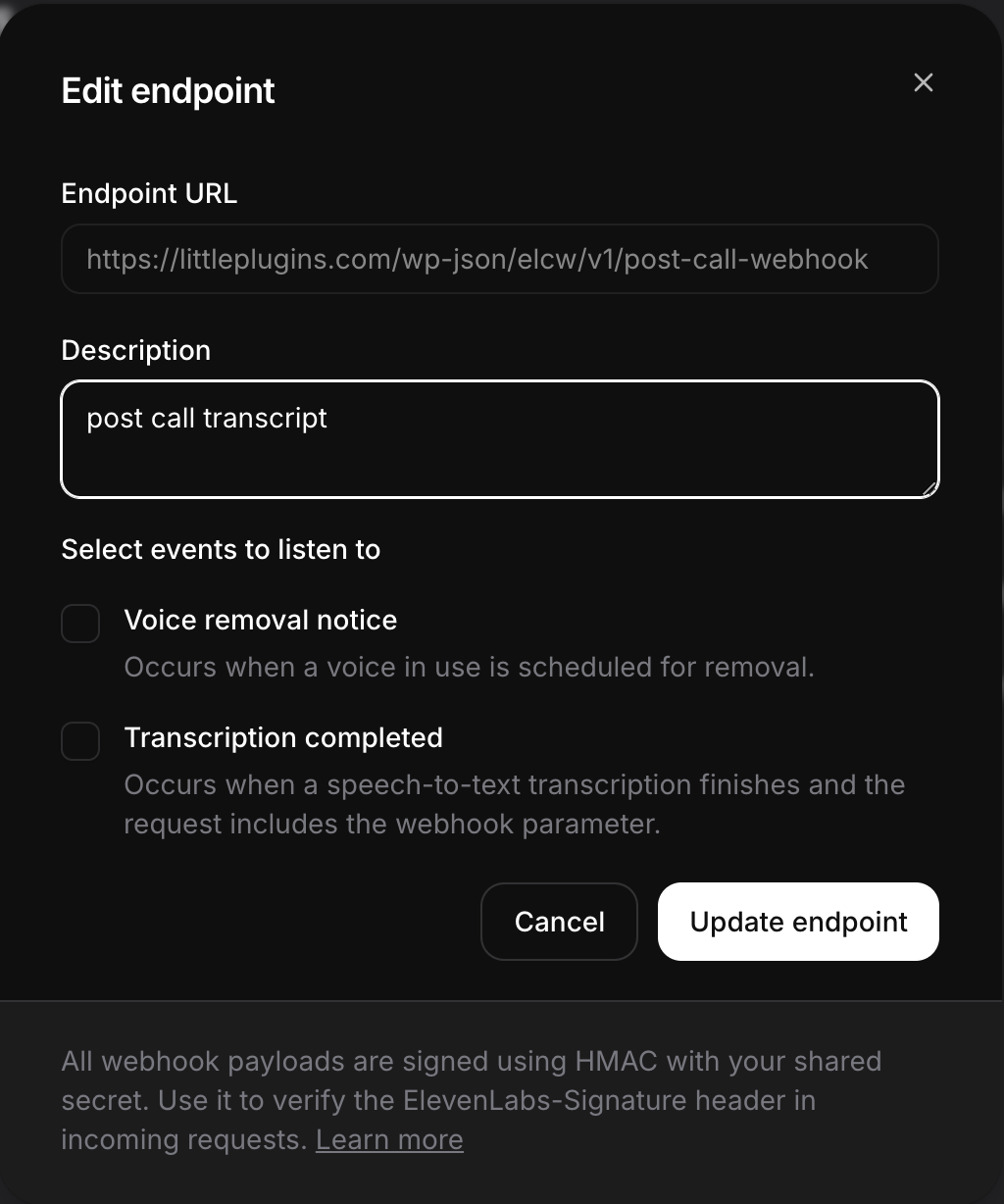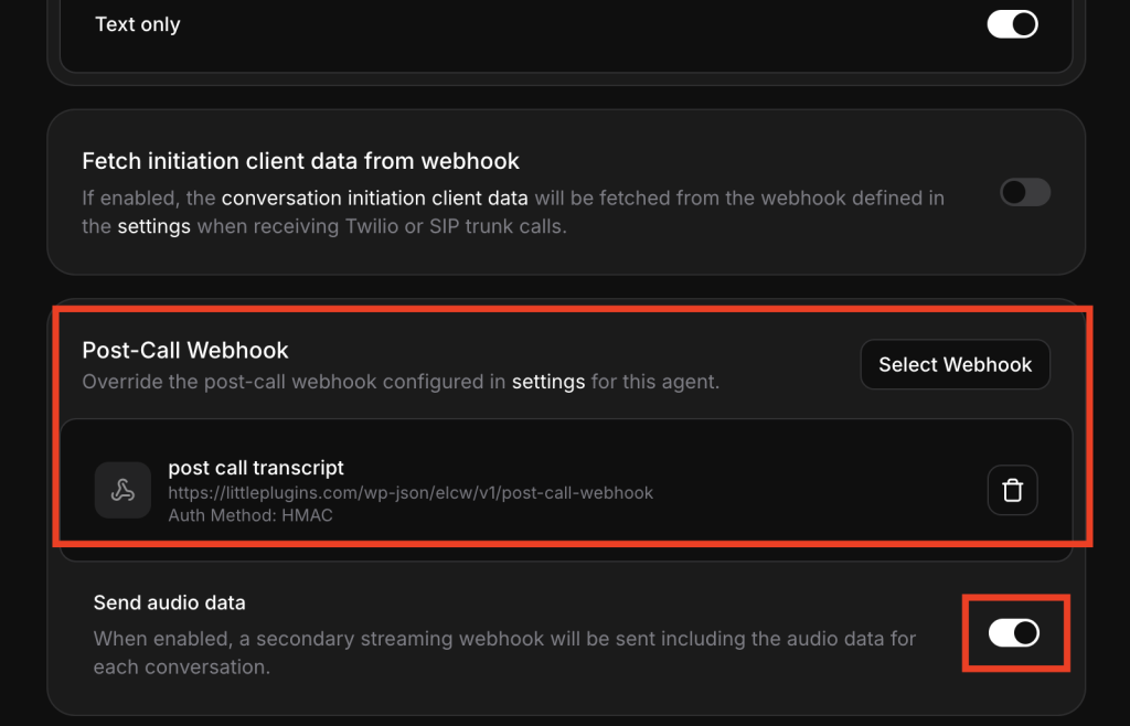 Endpoint URL: https://Your-Domain-HERE/wp-json/elcw/v1/post-call-webhook
